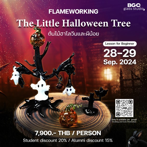 เปิดโอกาสให้คุณได้สัมผัสศิลปะแก้วในธีมฮาโลวีน โดยผู้เข้าร่วมจะได้ทดลองสร้างประติมากรรมต้นไม้และผีน้อยในรูปทรงต่าง ๆ